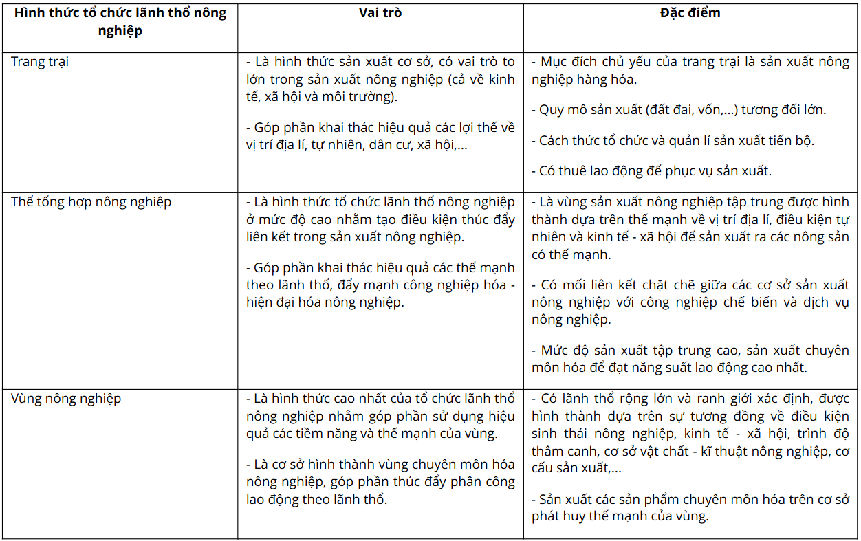 - Nêu vai trò của tổ chức lãnh thổ nông nghiệp.