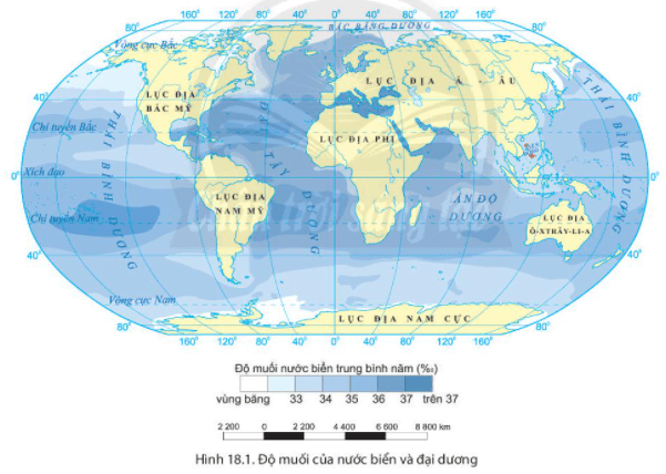 Câu hỏi 2 SGK Địa lí 6 Chân trời sáng tạo Bài 18 (trang 176): Tìm mối quan hệ giữa nhiệt độ và độ muối của nước biển, đại dương
