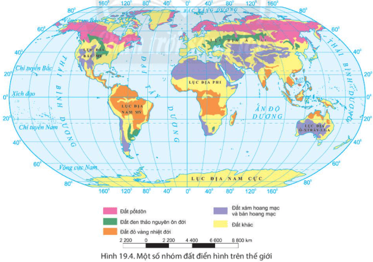 - Một số nhóm đất điển hình trên thế giới: đất potzon, đất đen thảo nguyên ôn đới, đất đỏ vàng nhiệt đới, đất xám hoang mạc và bán hoang mạc,...