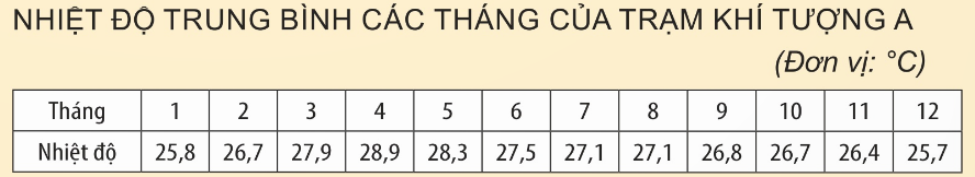 - Nhiệt độ trung bình năm của trạm khí tượng A là: 27,1oC.
