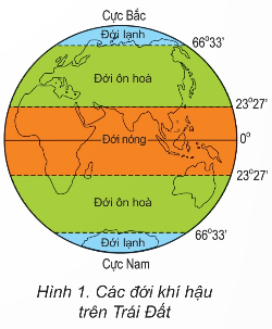 Câu 1: Xác định trên hình 1 phạm vi của năm đới khí hậu trên Trái Đất.