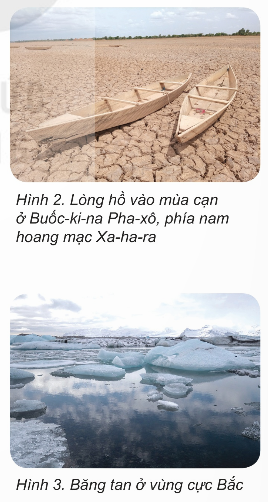 Câu hỏi: Dựa vào thông tin trong mục a và hình 2, 3, em hãy nêu một số biểu hiện của biến đổi khí hậu.