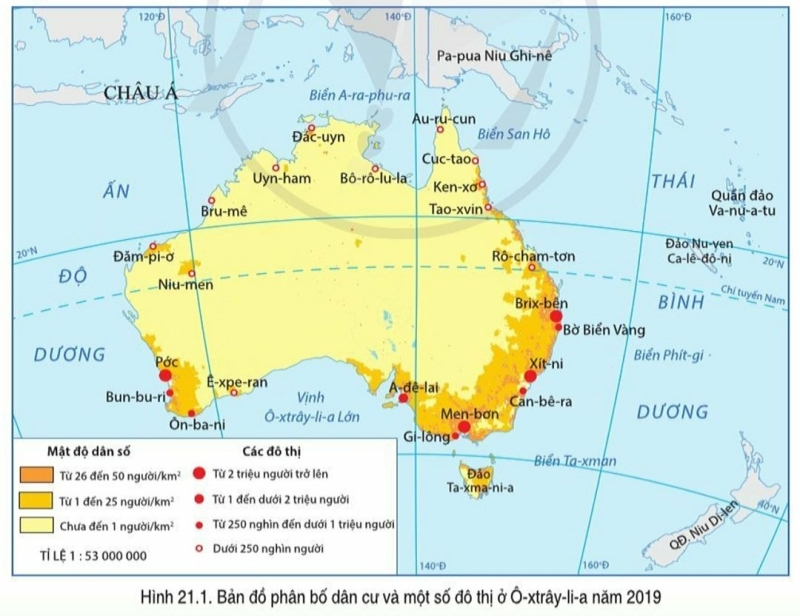 Câu hỏi SGK Địa lí 7 Cánh Diều Bài 21 (trang 147): Đọc thông tin và quan sát hình 21.1, hãy trình bày đặc điểm dân cư của Ô-xtrây-li-a.