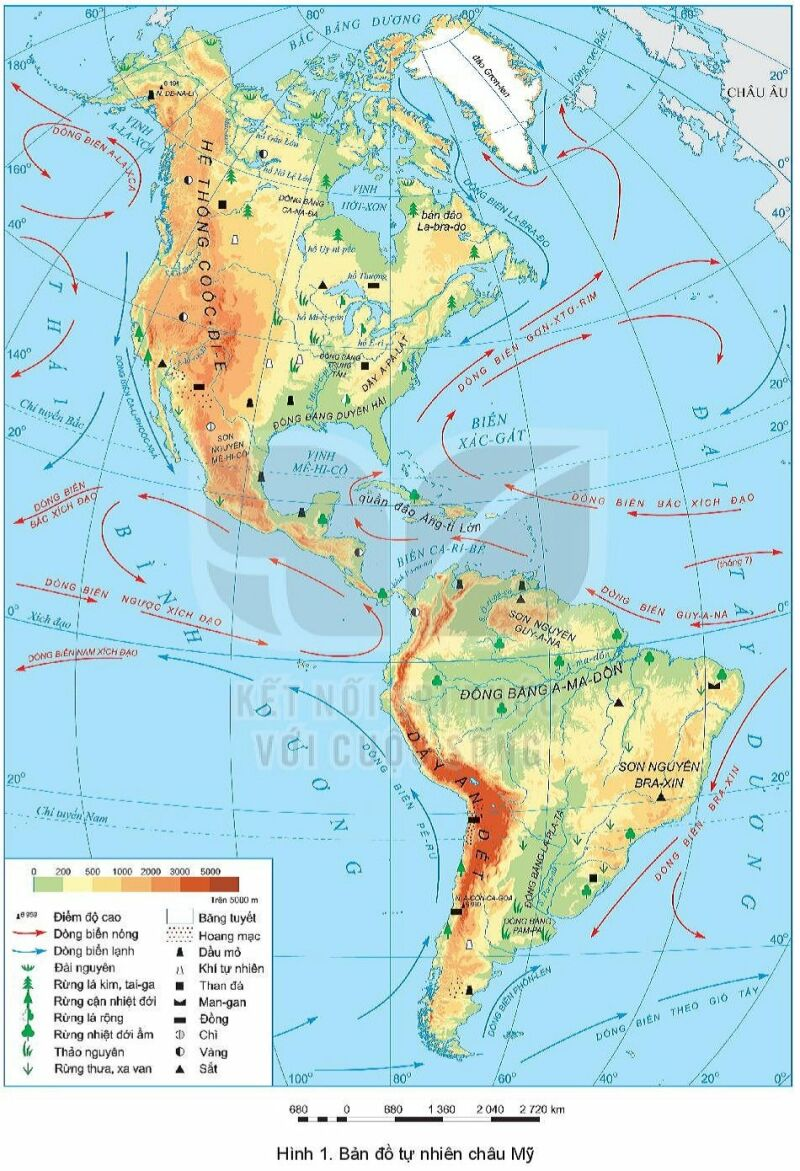 Câu hỏi. Dựa vào thông tin và hình 1, 2 trong mục 1, hãy trình bày sự phân hoá thiên nhiên theo chiều bắc – nam ở Trung và Nam Mỹ.