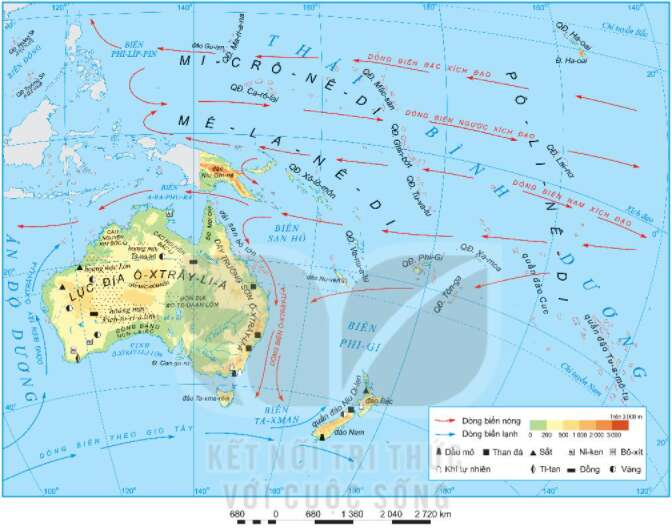 Câu 1. Dựa vào bản đồ hình 1, hãy xác định vị trí các khu vực địa hình, khoáng sản của Ô-xtrây-li-a.