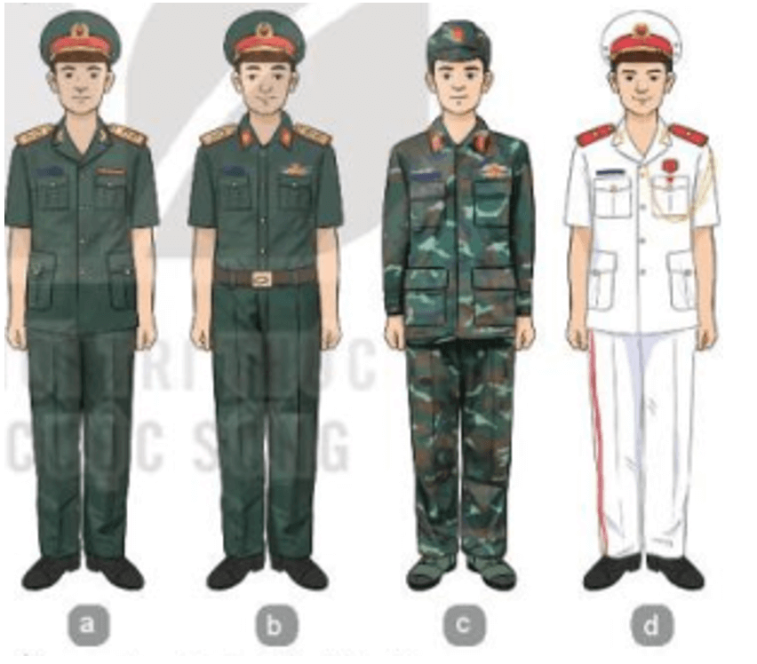 Câu hỏi 4 SGK GDQP 10 Kết nối tri thức Bài 8 (trang 44): Em có nhận xét gì về một số loại trang phục trong hình 8.3