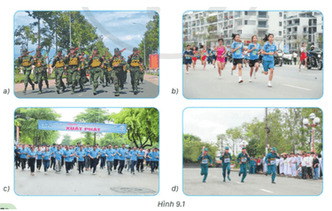 - Hình 9.1a và 9.1d là chạy vũ trang. Vì trong các bức ảnh này đã thể hiện tương đối đầy đủ đặc điểm của chạy vũ trang, là: