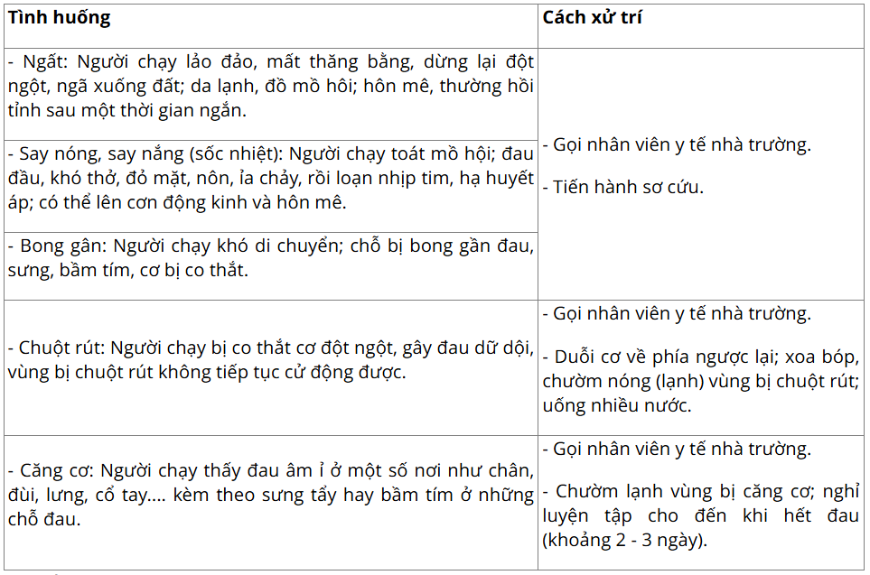 - Có bộ phận y tế trường học trực tại nơi tập chạy trong suốt thời gian học tập.
