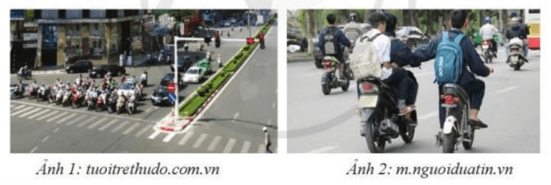 Mở đầu SGK Kinh tế Pháp luật 10 Cánh diều Bài 21 (trang 128): Em hãy quan sát các ảnh dưới đây và cho biết, người tham gia giao thông trong mỗi ảnh đã có hành vi như thế nào? Có phù hợp với pháp luật hay không? Vì sao?