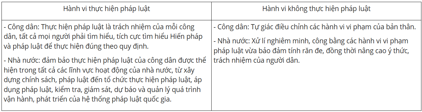 Vận dụng 2: Nêu hướng phát huy hành vi thực hiện pháp luật hoặc khắc phục hành vi không thực hiện pháp luật.