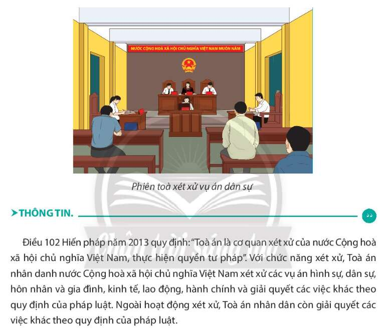 + Nhân danh nước CHXHCNVN xét xử các vụ án hình sự, dân sự, hôn nhân và gia đình,... theo quy định của pháp luật.
