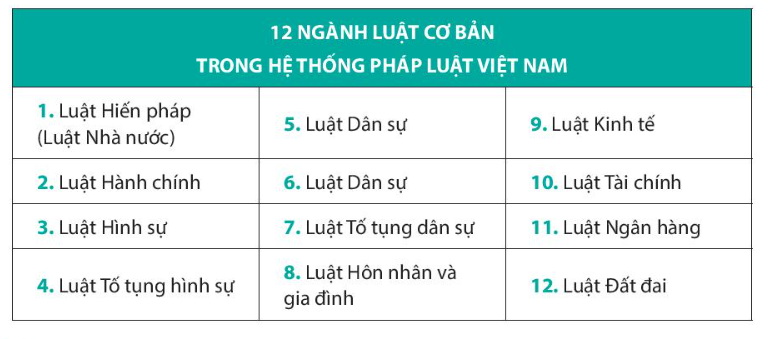 - Hệ thống pháp luật Việt Nam có 12 ngành luật, đó là các ngành luật: