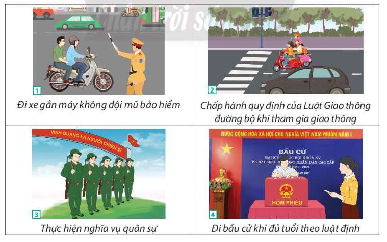 Câu hỏi mục 3 SGK Kinh tế Pháp luật 10 Chân trời sáng tạo Bài 18 (trang 126): Em hãy quan sát hành vi được mô tả trong các bức tranh dưới đây và trả lời câu hỏi.
