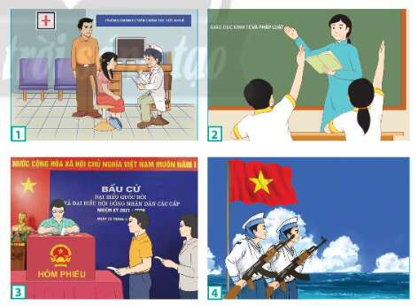 - Em hãy cho biết các tranh trên mô tả quyền và nghĩa vụ gì theo Hiến pháp băm 2013?