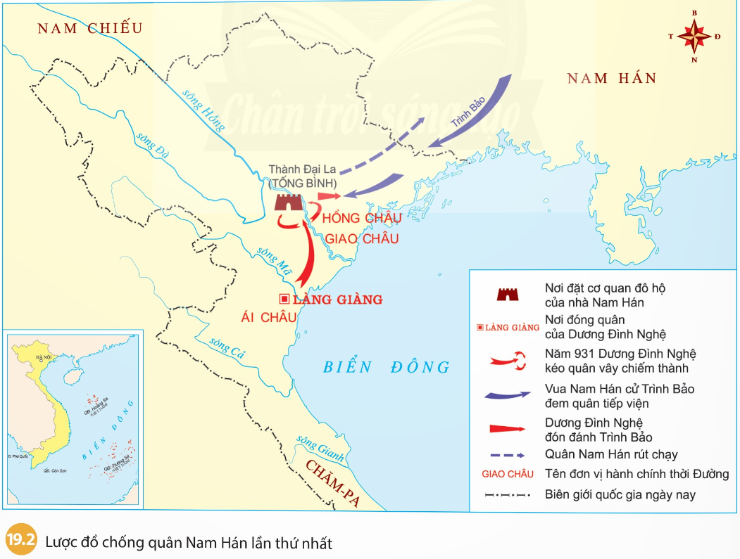 Câu hỏi mục 2 SGK Lịch sử 6 Chân trời sáng tạo Bài 19 (trang 97): Dựa vào lược đồ 19.2 kết hợp với thông tin trong bài học, em hãy trình bày những điểm chính về diễn biến và kết quả cuộc kháng chiến chống quân Nam Hán do Dương Đình Nghệ lãnh đạo.
