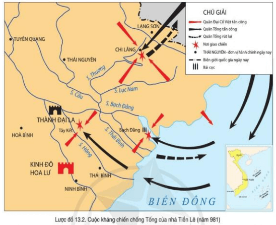 Câu hỏi mục 5 SGK Lịch sử 7 Cánh Diều Bài 13 (trang 46): Đọc thông tin, tư liệu và quan sát hình 13.2, hãy mô tả cuộc chống Tống nhà Tiền lê năm 981.