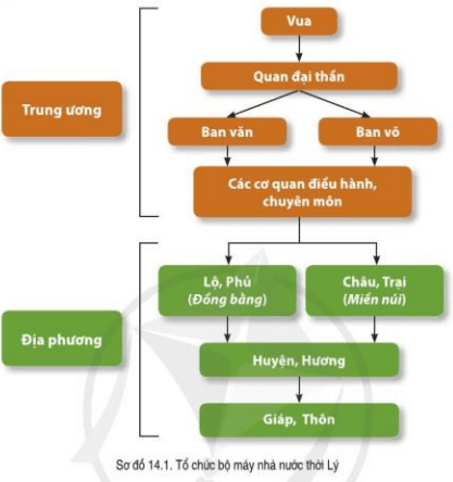 Câu hỏi SGK Lịch sử 7 Cánh Diều Bài 14 (trang 48): Đọc thông tin và quan sát sơ đồ hình 14.1, hãy mô tả những nét chính về tình hình chính trị và rút ra nhận xét về tổ chức bộ máy nhà nước dưới thời Lý.