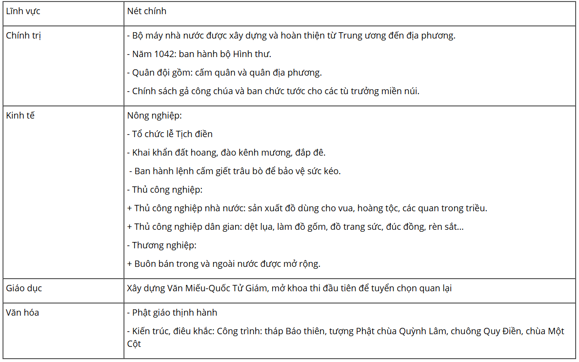 * Những nét chính về chính trị, kinh tế, xã hội, văn hoá, giáo dục thời Lý