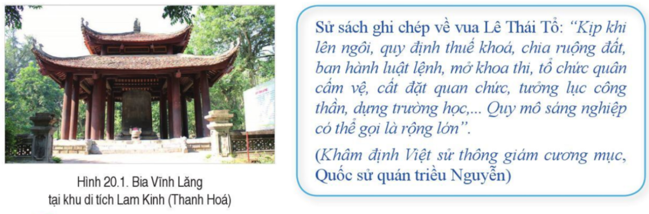Câu hỏi mục 1 SGK Lịch sử 7 Cánh Diều Bài 20 (trang 77): Đọc thông tin và tư liệu, quan sát hình 20.1, hãy mô tả sự thành lập triều Lê sơ.