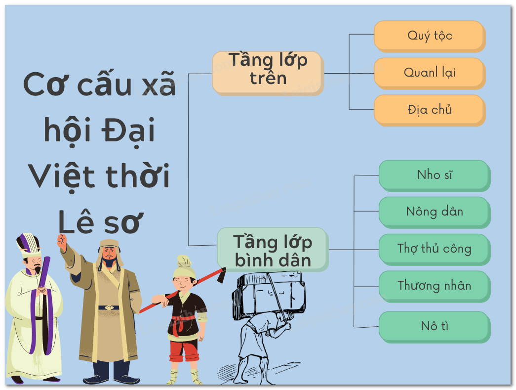 Câu hỏi mục 4 SGK Lịch sử 7 Cánh Diều Bài 20 (trang 80): Đọc thông tin hãy trình bày cơ cấu xã hội và vẽ sơ đồ cơ cấu xã hội thời Lê sơ.