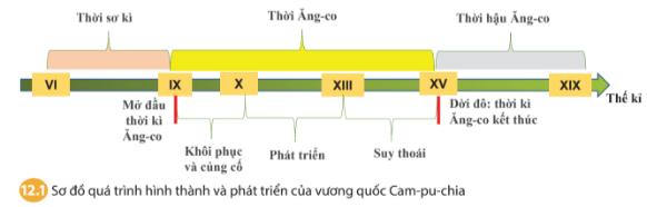Câu hỏi mục 1 SGK Lịch Sử 7 Chân trời sáng tạo Bài 12 (trang 45): Dựa vào sơ đồ 12.1 và thông tin trong bài, em hãy tóm tắt lại quá trình hình thành và phát triển của vương quốc Cam-pu-chia.