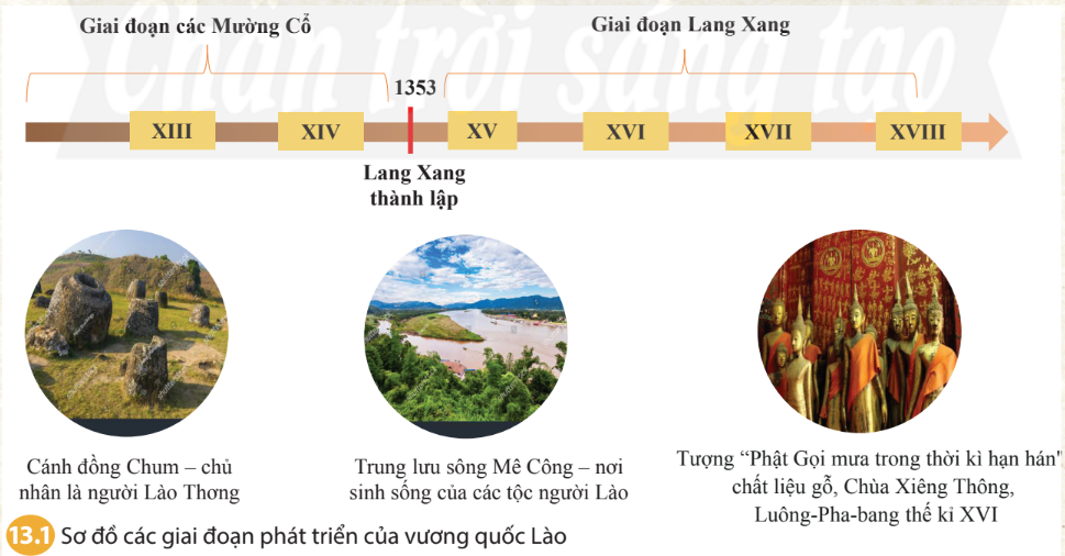 Câu hỏi mục 1 SGK Lịch Sử 7 Chân trời sáng tạo Bài 13 (trang 48): Dựa vào sơ đồ 13.1 và thông tin trong bài, em hãy mô tả quá trình hình thành và phát triển của vương quốc Lào.