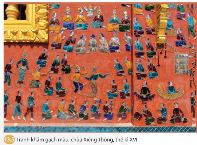 Câu hỏi Vận dụng SGK Lịch Sử 7 Chân trời sáng tạo Bài 13 (trang 50): Quan sát bức tranh khảm 13.5, em hãy cho biết, giá trị văn hoá truyền thống nào của Lào đến nay vẫn được bảo tồn và phát triển?