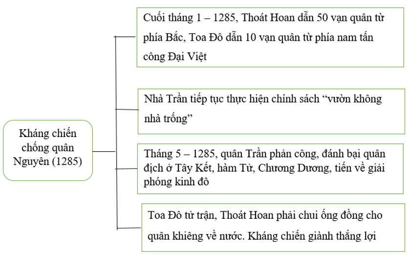 * Sơ đồ tư duy diễn biến chính của cuộc kháng chiến chống quân Nguyên năm 1285.
