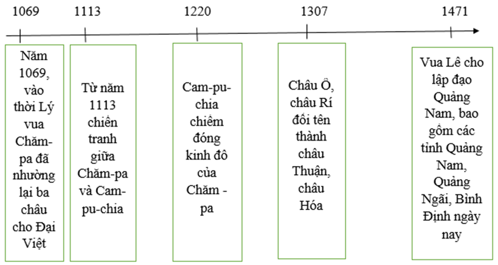 - Năm 1069, vua Chăm-pa nhường lại ba châu là Bố Chính, Địa Lý (Quảng Bình), Ma Linh (bắc Quảng Trị) cho Đại Việt.