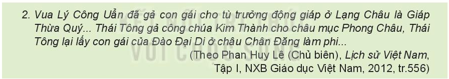 Câu 1. Tư liệu 2 cho em biết điều gì về chính sách của nhà Lý đối với các tù trưởng miền núi?