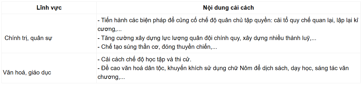+ Củng cố chế độ quân chủ tập quyền bằng các biện pháp: cải tổ quy chế quan lại, lập lại kỉ cương…