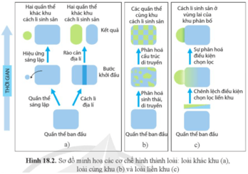 Câu hỏi 2: Dựa vào hình 18.2, hãy mô tả các cơ chế hình thành loài.
