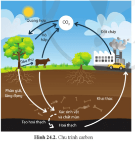 Câu hỏi 3: Quan sát hình 24.2 và trình bày khái quát chu trình carbon.