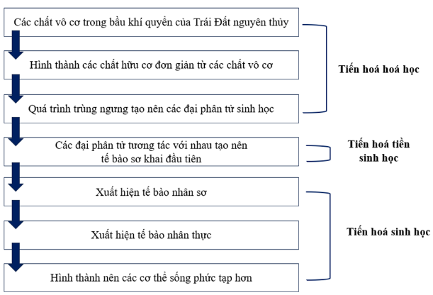 Câu hỏi 3: Hãy vẽ sơ đồ đơn giản, tóm lược các giai đoạn chính của quá trình phát sinh sự sống trên Trái Đất.