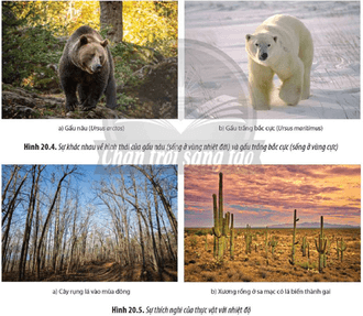 Câu hỏi 4: Quan sát Hình 20.4 và 20.5, hãy cho biết sự khác nhau về hình thái cơ thể ở các loài sinh vật có ý nghĩa như thế nào trong việc thích nghi với các điều kiện môi trường khác nhau.