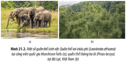 Câu hỏi 1: Quan sát Hình 21.2, hãy xác định các dấu hiệu (số loài, không gian sống) của một quần thể sinh vật.