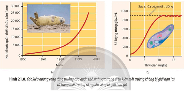 Câu hỏi 9: Quan sát Hình 21.8, hãy phân biệt hai kiểu tăng trưởng của quần thể sinh vật.