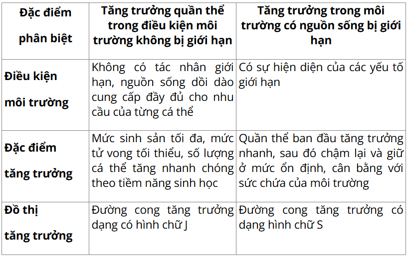 - Sự tăng trưởng của quần thể sinh vật phụ thuộc vào mức sinh sản, mức tử vong, mức nhập cư và mức xuất cư; trong đó, mức sinh sản và mức tử vong là hai yếu tố mang tính quyết định.