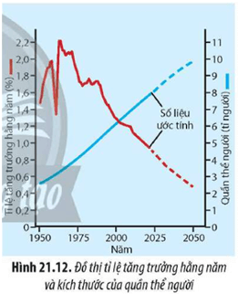 Câu hỏi 12: Quan sát Hình 21.11, hãy nhận xét về sự tăng trưởng của quần thể người. Sự tăng trưởng dân số quá nhanh sẽ gây ra những hậu quả gì?