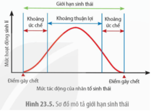 Câu hỏi 1 (trang 126) Sinh 12 Kết nối tri thức Bài 23: Quan sát Hình 23.5 và cho biết mức hoạt động sinh lí cao nhất của sinh vật nằm trong khoảng tác động nào.