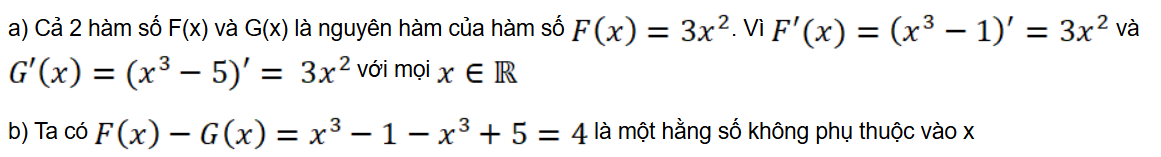 a) Cả hai hàm số F(x) và G(x) có phải là nguyên hàm của hàm số f(x) = 3x2 trên ℝ hay không?