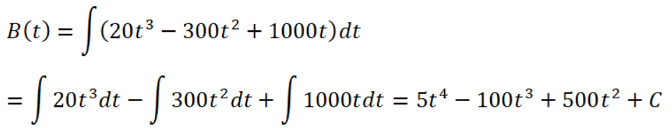 B'(t) = 20t3 – 300t2 + 1 000t,