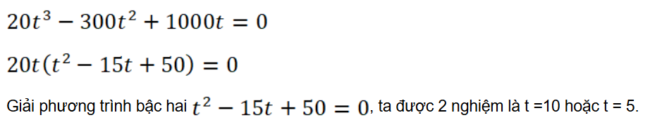 Do đó, hàm số B(t) có các điểm cực trị là t = 0,5,10. Tính B(t) tại các điểm cực trị và tại điểm t lớn nhất =15: