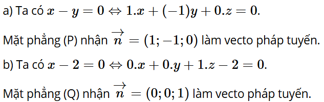 Luyện tập 4: Chỉ ra một vectơ pháp tuyến của mỗi mặt phẳng sau: