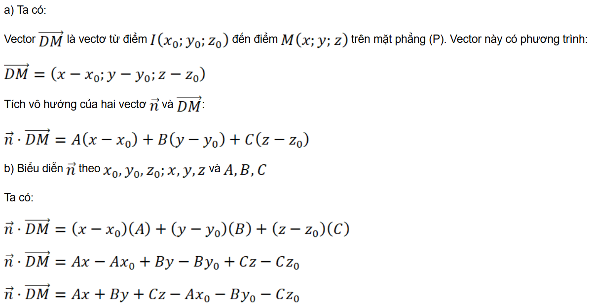 b) Hãy biểu diễn theo x0, y0, z0; x, y, z và A, B, C.