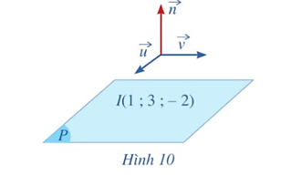 Hoạt động 6: Cho mặt phẳng (P) đi qua điểm I(1; 3; – 2) có cặp vectơ chỉ phương là , (Hình 10).