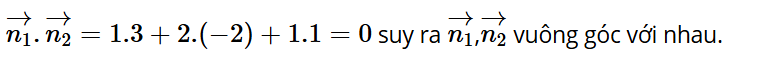 Gọi lần lượt là vectơ pháp tuyến của hai mặt phẳng (P1), (P2). Hai vectơ có vuông góc với nhau hay không?