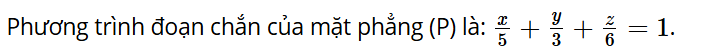 Bài tập 7: Lập phương trình mặt phẳng theo đoạn chắn của mặt phẳng (P), biết (P) đi qua ba điểm A(5; 0; 0), B(0; 3; 0), C(0; 0; 6).