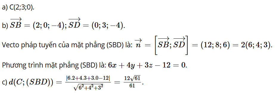 c) Tính khoảng cách từ điểm C đến mặt phẳng (SBD).