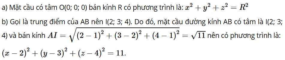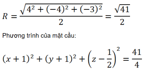 Vậy phương trình đã cho là phương trình của một mặt cầu có tâm I(3; 1; 2) và bán kính R = = 5.